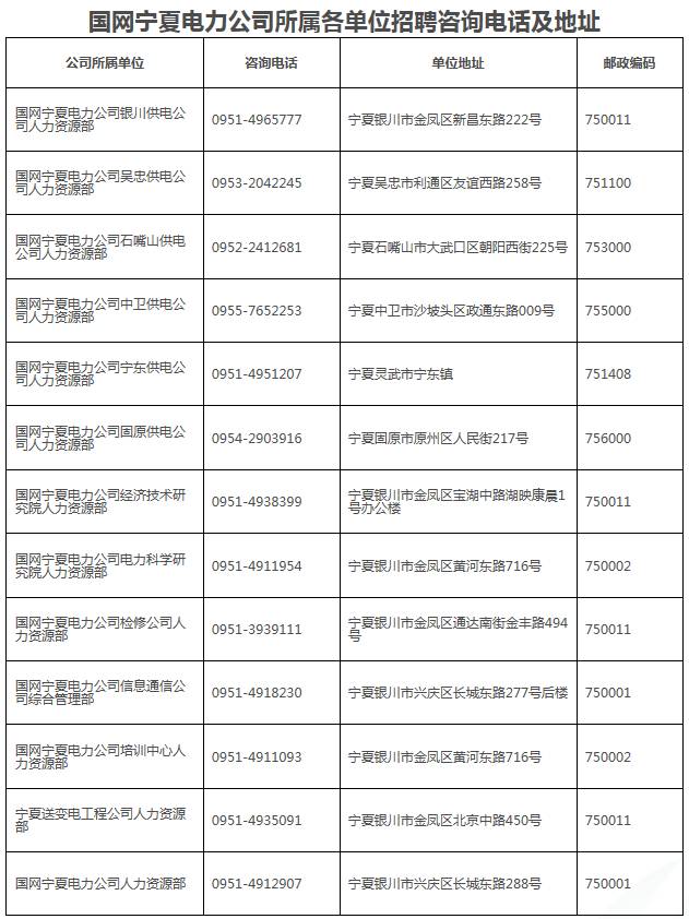 联系地址:福建省福州市五四路257号国网福建省电力有限公司人力资源部 邮编:350003